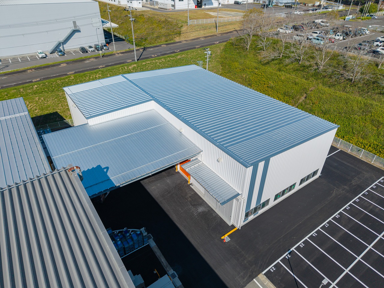 既存工場敷地内に物流倉庫が完成しました。4年前に初めてシステム建築で物流倉庫を建築させていただいたお客様で、今回2棟目のシステム建築になります。工場稼働中の施工で制約もある中、工場の担当者様と大型車両の往来について細かく調整し、安全に十分配慮し施工させていただきました。
